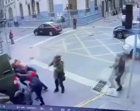 Mientras tanto, la policía ejerciendo la mayor proporción de brutalidad posible, intenta arrestar a esta joven manifestante. Los oficiales utilizan repelentes tóxicos contras propios y extraños. Ni siquiera se salva la prensa cubriendo el evento. No obstante, una masa de manifestantes encierra a los uniformados y logra liberar a la joven detenida por estos custodios armados hasta los dientes.